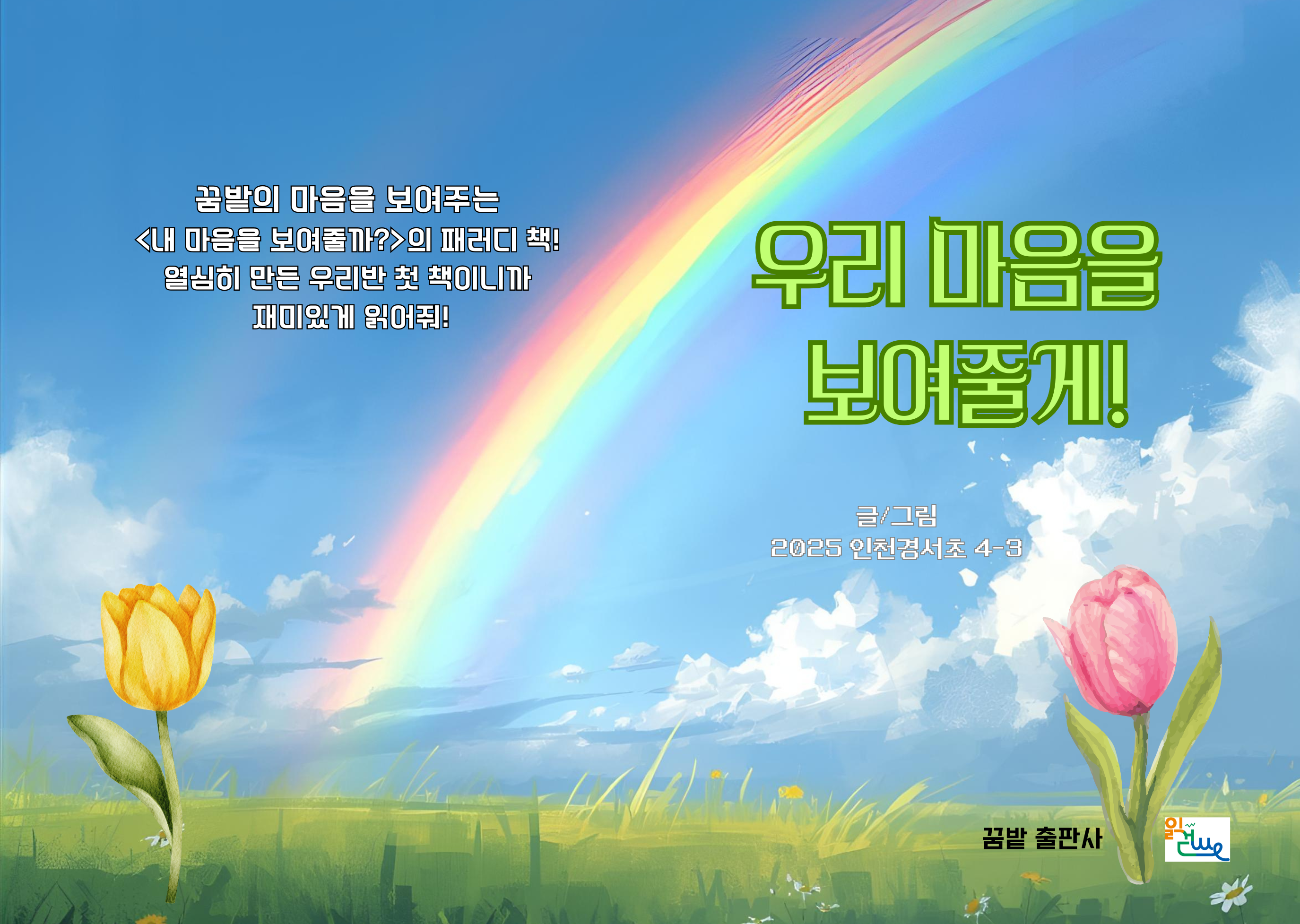 인천경서초등학교 4학년 3반 20명의 학생들이 <내 마음을 보여줄까?> 그림책을 읽은 후, 내가 보여주고 싶은 마음을 솔직한 글과 디지털 AI 그림으로 표현한 것을 엮은 책입니다.