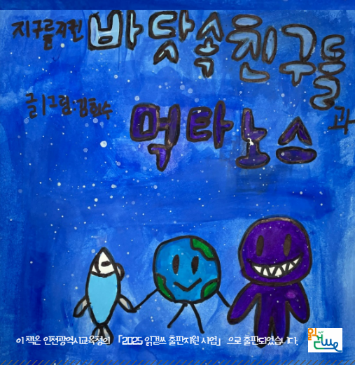 이 책은 바닷속 친구들이 먹타노스에게서 지구의 멸망을 막아내는 환경에 관한 책입니다. 원래, 바닷속 친구들의 마을은 평화롭고 아름다운 곳이었습니다. 그런데 먹타노스는 자기 별 보다 더 아름답고 깨끗한 지구가 질투가 나서 지구를 멸망시킬 계획을 세웠습니다. 바닷속 친구들은 먹타노스가 지구를 멸망 시키려는 걸 알고, 멸망을 막을 방법을 찾았습니다. 먹타노스가 지구를 침략한 날, 바닷속 친구들은 힘을 합쳐서 멸망을 막고, 먹타노스는 지쳐서 타노스 별로 돌아갔고, 바닷속 친구들은 파티를 하러 집으로 갔습니다.먹타노스가 타노스 별로 돌아갔을 때는 이미 먹타노스의 나라가 멸망 되어 있었습니다. 타노스 별은 먹타노스가 환경을 아끼지 않고, 쓰레기나 필요 없는 물건을 아무 데나 버려서 먹타노스의 나라가 멸망 된 것입니다. 그래서 먹타노스는 바닷속 친구들에게 도와 달라고 말했습니다. 착한 바닷속 친구들은 먹타노스를 도와주었습니다. 그래서 바닷속 친구들과 먹타노스는 친구가 되었고, 먹타노스의 별은 다 나았습니다. 이 책을 쓴 이유는 이 책을 읽으면 환경을 막 사용하는 사람도, 환경을 아끼는 사람도 모두가 환경을 아끼는 마음이 더 커질 수 있겠다는 생각이 들었기 때문입니다. 이 책을 처음 쓸 때, 조금 어렵고 힘들었지만, 점점 많이 쓸수록 재밌었습니다. 그리고 사람들이 이 책을 읽고, 환경을 아끼는 마음이 더 커졌으면 좋겠습니다.